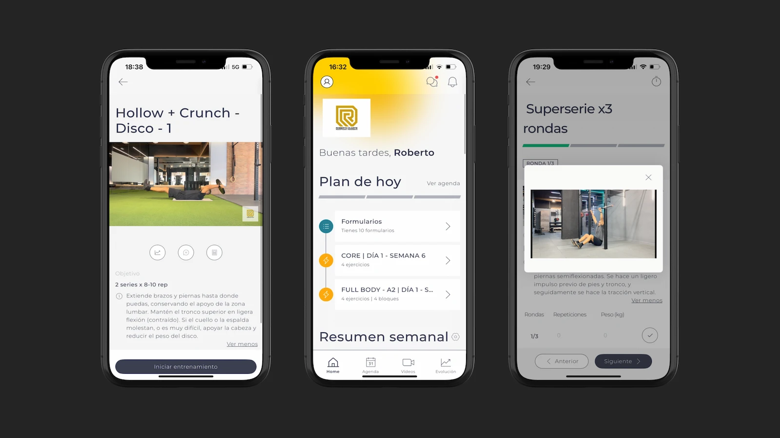 Salvo momentos necesarios de agenda y objetivos, donde podemos configurar la sesión a trabajo de tren inferior o superior.